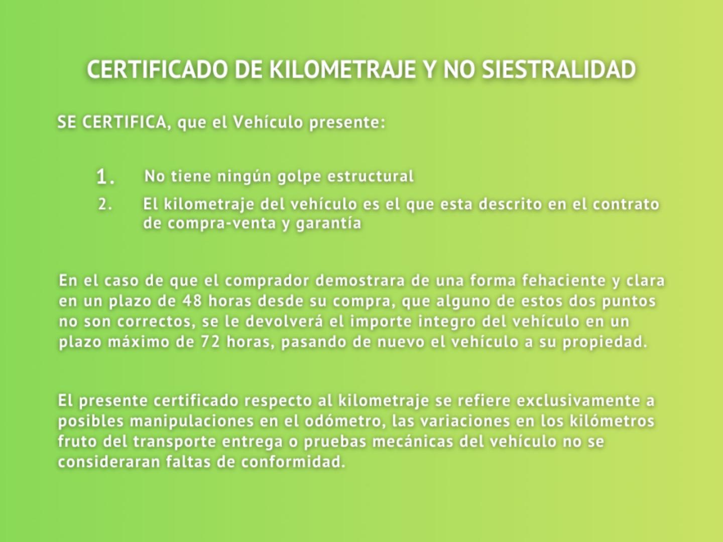 Incluye GARANTÍA PREMIUM de 1 AÑO (en vehículos KM0/DEMO la garantía es de 3 años desde fecha de matriculación) con cobertura nacional y europea.