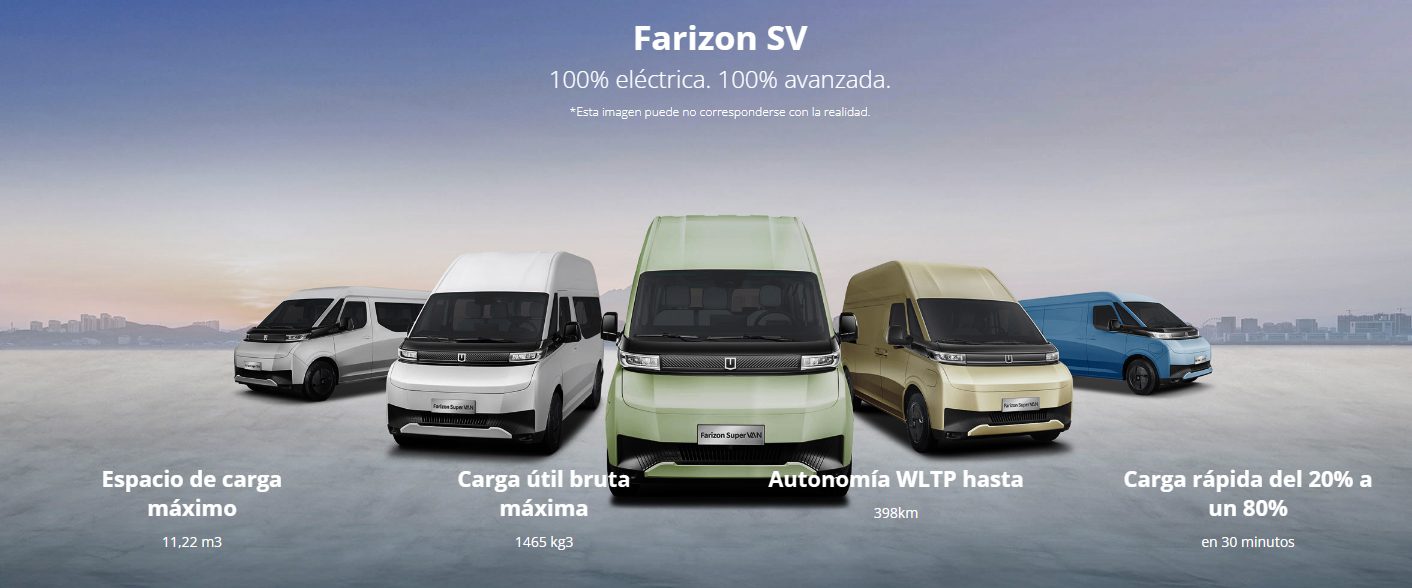 - Farizon SuperVAN: Furgoneta eléctrica 100% diseñada para negocios, con una autonomía de hasta 400 km y gran capacidad de carga. Ideal para flotas urbanas, transporte de mercancías y operaciones logísticas sostenibles.